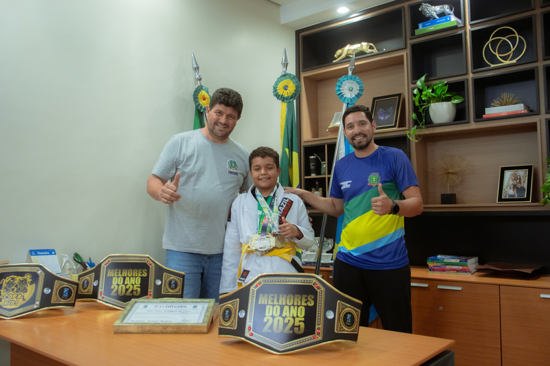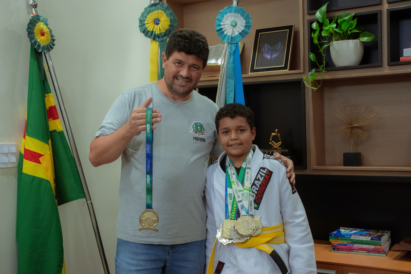 Jovem atleta de sidrolândia visita paço municipal e celebra conquistas no jiu-jitsu